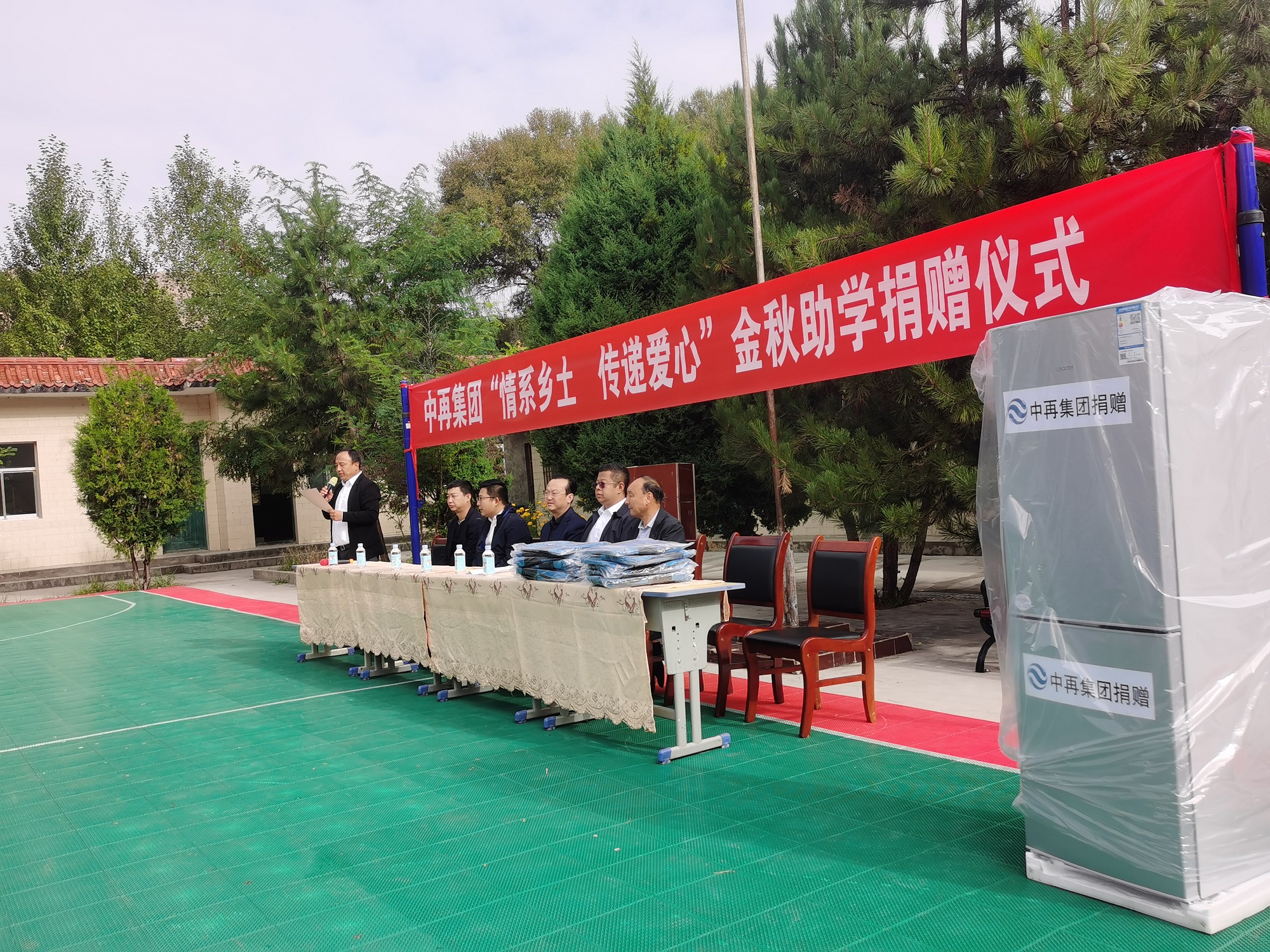 在9月15日举行的“情系乡土 传递爱心”助学捐赠活动上,中再集团为古及来村小学的140余名学生送去了崭新的校服和书包,为住校师生送去了储存食物的电冰箱。