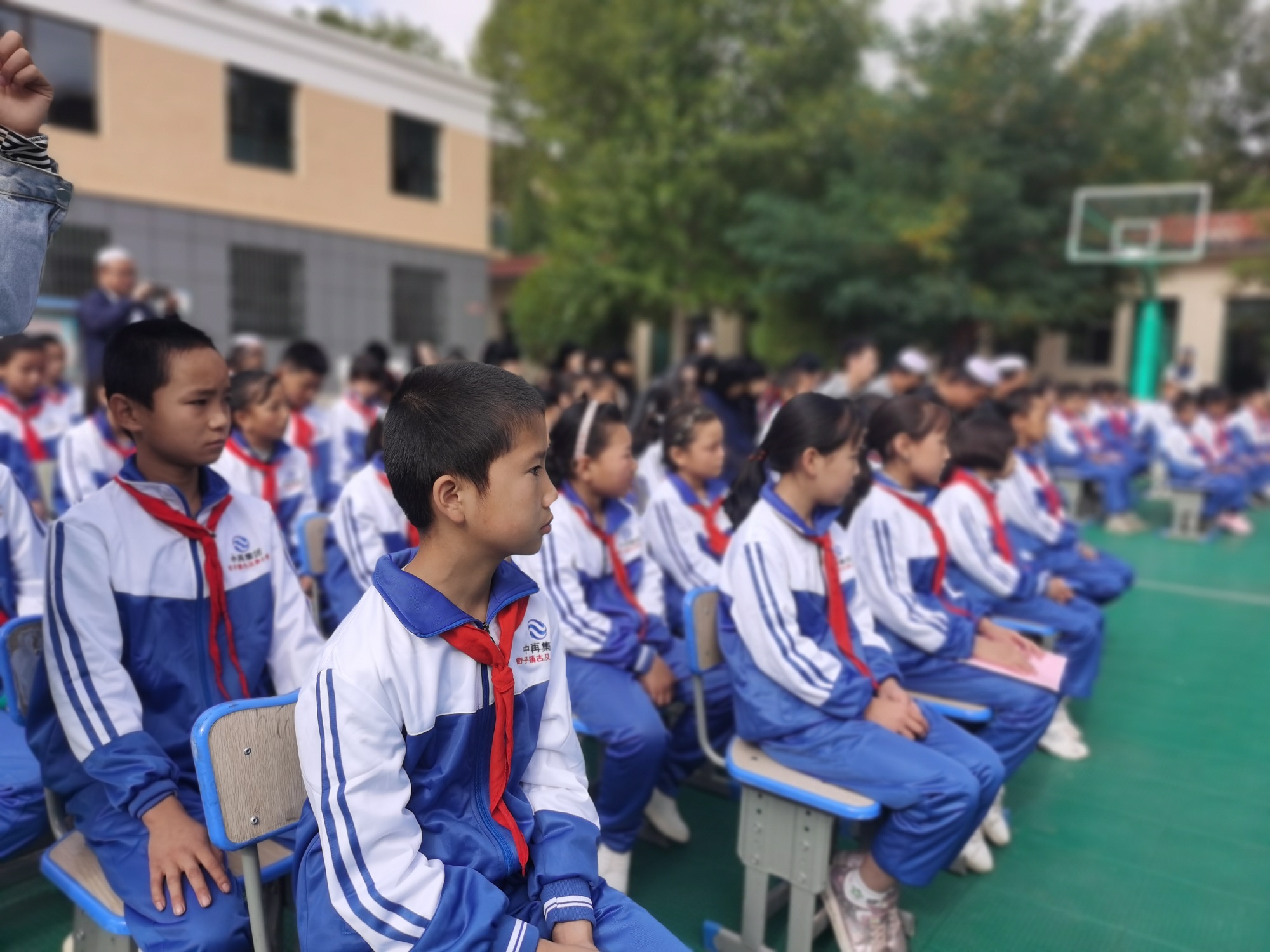 金秋时节的青海省循化县,气温渐凉、秋风萧瑟,但街子镇古及来村小学的同学们却感受到了来自中再集团全体员工的温暖,他们第一次穿上了统一的校服,整齐地坐在操场上。蓝白相间的校服,配上鲜艳的红领巾,在绿色的篮球场上,格外精神。