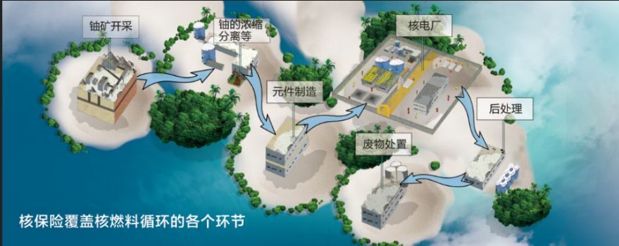 中国核共体的核保险保障覆盖了境内所有运营核电机组及其他有关核设施、核活动,并通过再保险分入业务参与了境外300多台运营核设施的核保险保障。中国核保险共同体的核保险保障可以从核燃料循环前端的矿石开采与运输、提纯、分离、制造,延伸至核设施的运行、乏燃料后处理、废物处置环节,形成了一条完整的保障链条。