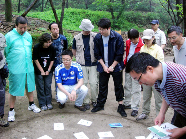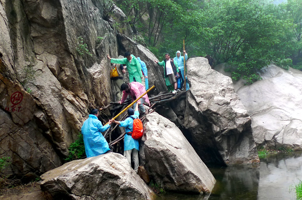 拓展活动在怀柔黄花城进行,活动项目包括徒步穿越大峡谷、模拟搜索救援等。徒步穿越活动途经的大峡谷自然风貌保持完好,地形复杂、岩石溪流横亘交错。大家不顾路况艰险、雨天路滑,相互鼓励,相互扶持,徒步行进长达10余公里,充分体现了不畏艰险、奋勇争先的竞争精神和团结友爱、相互协作的团队意识。在模拟搜索救援项目中,大家制作担架、学习野外救援知识(野外心脏急救、包扎等),真实在线模拟“危机管理”和“时间管理”。通过有效沟通,了解自身与同伴的力量、局限和潜力,努力去达到一个共同的目标,完成了一次独一无二的学习体验。