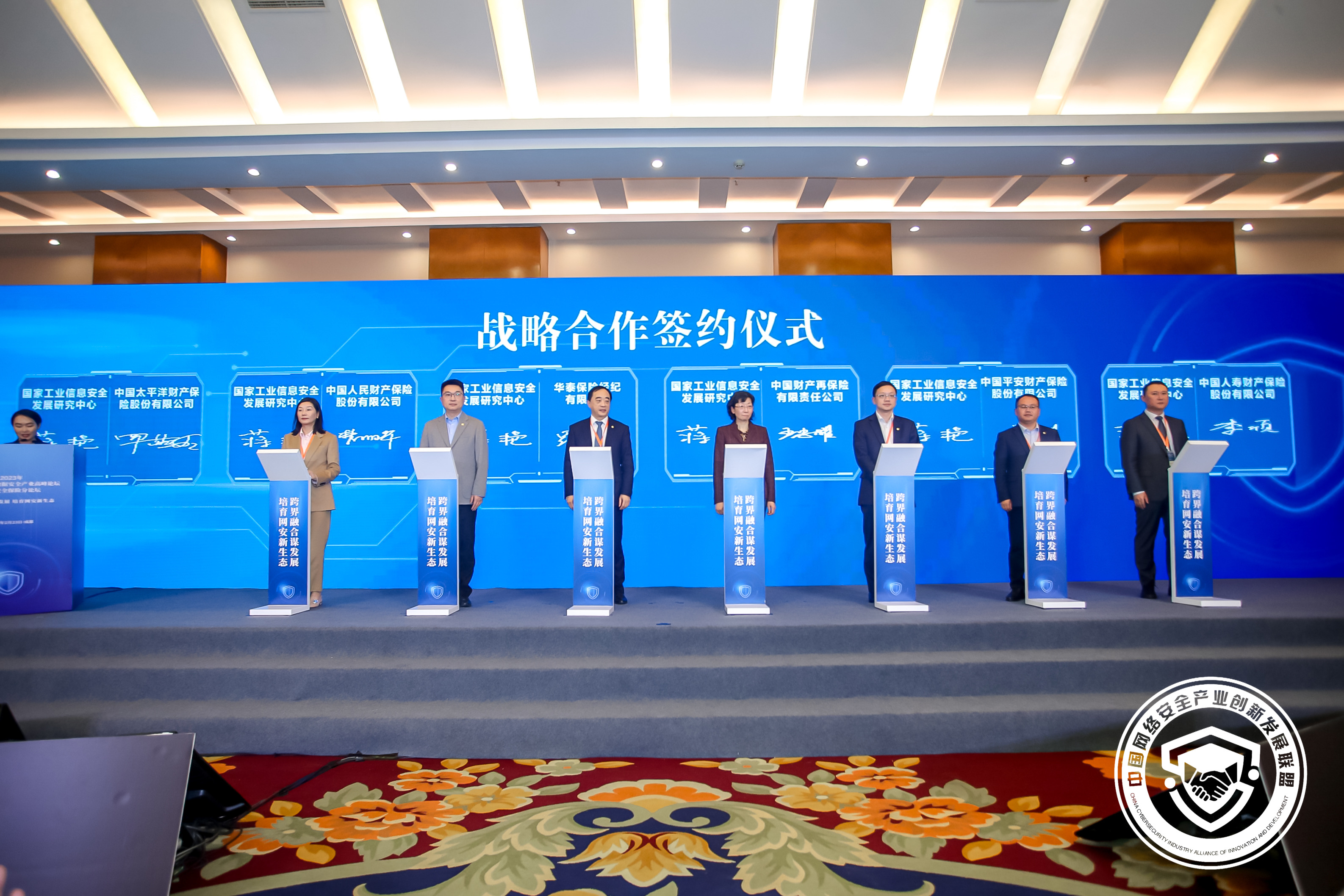 本次高峰论坛由工信部和四川省人民政府主办。在网络安全保险分论坛上,工信部网络安全管理局局长隋静、中国工程院院士方滨兴、银保监会领导、相关保险和科技企业专家100余人出席论坛并亲历了签约仪式。 |
